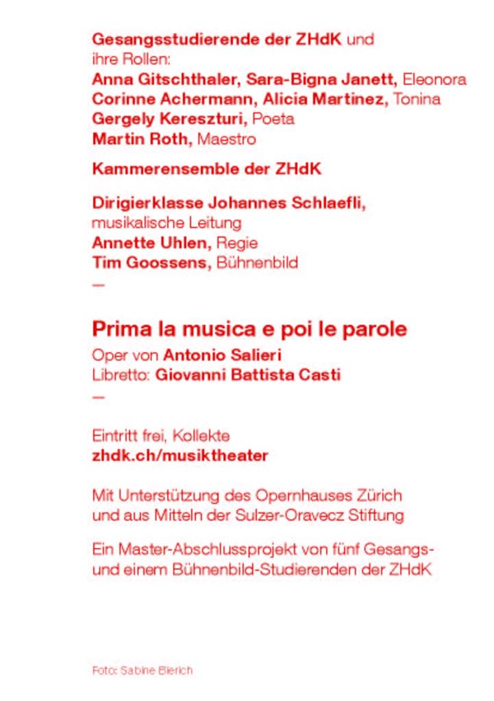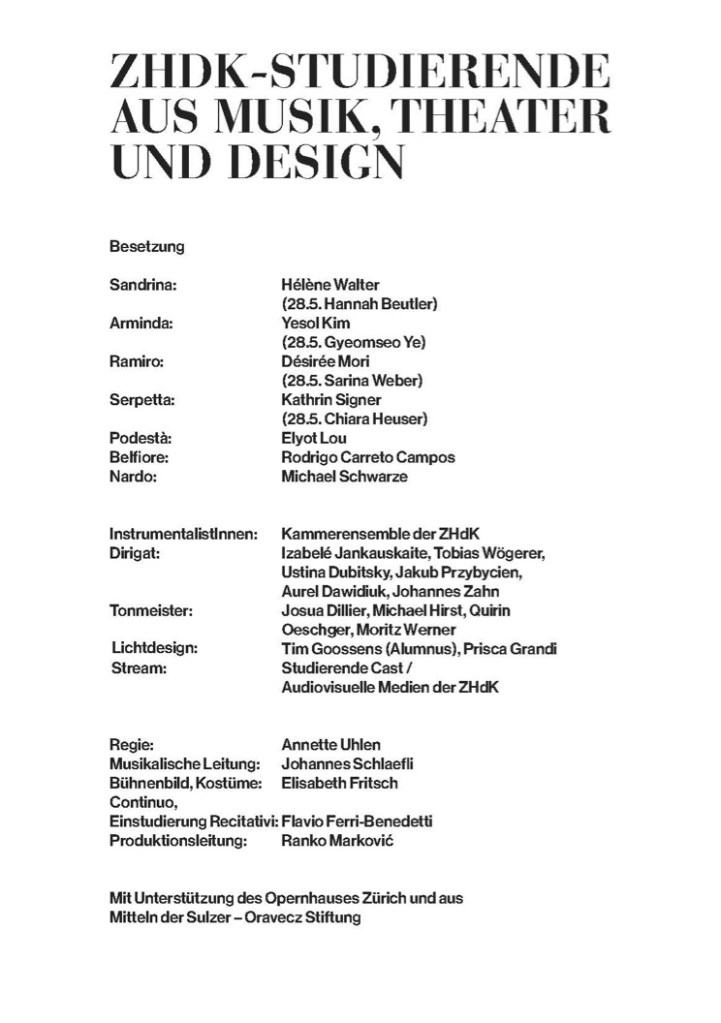 Students and staff of the Zürich University of the Arts unite in stage productions of operas by Mozart, Menotti and Salieri.